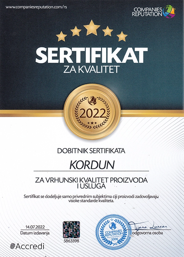 Svi proizvodi i legure su izrađeni po važećim međunarodnim standardima i dolaze sa garancijom kvaliteta i pouzdanosti.